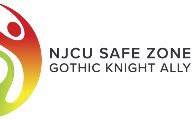 Photo of Students gathering around to take a group selfie with eachother on the base of the fountain located on the NJCU MAin Campus.