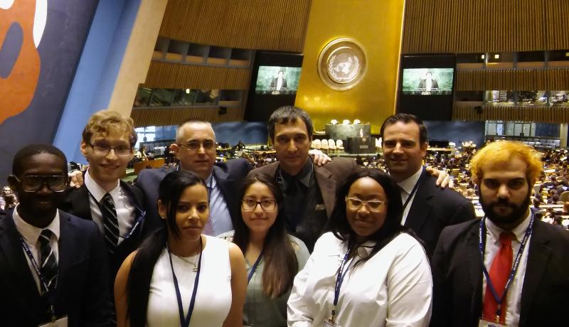 The students taking part in the NMUN event were Cely Cotto, General Assembly First Committee; Pollak, General Assembly Second Committee; Harold Daniels, General Assembly Third Committee; Monir Khilla and Jeniya Turner, High-level Political Forum on Sustainable Development (HLPF) Committee; Vakhtang Kizirya and Alejandra Mexia, United Nations Environment Assembly Committee; and Philip Cranwell and Joseph Hurley, International Atomic Energy Agency (IAEA) Committee. Dr. Ning Liao, Assistant Professor of Political Science, served as faculty advisor.