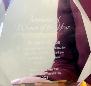JERSEY CITY, N.J. | New Jersey City University (NJCU) President Sue Henderson, Ph.D. was awarded the International Woman of the Year by the City of West New York, N.J. during its International Women’s Day virtual celebration on March 15.