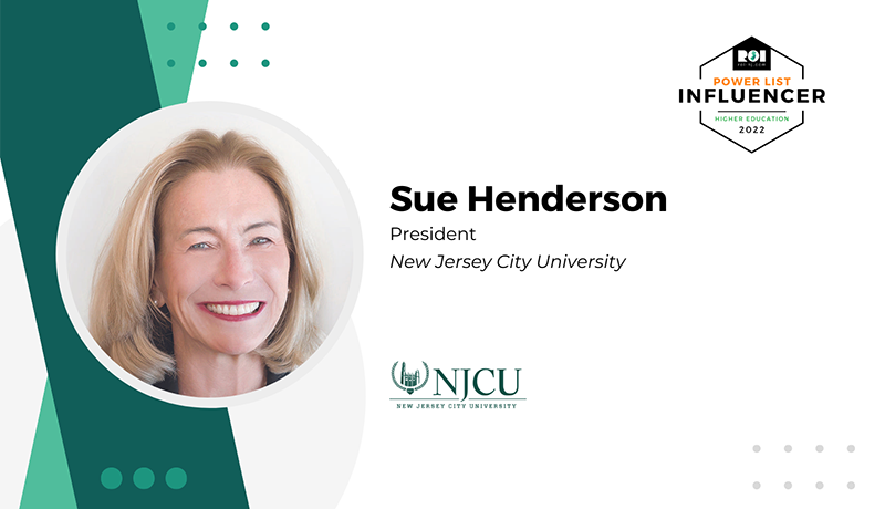 JERSEY CITY, N.J. | New Jersey City University (NJCU) President Sue Henderson, Ph.D. has been named to the 2022 ROI Influencers Power List for Higher Education by ROI-NJ, a statewide leading business publication. It is the fourth consecutive year NJCU’s chief executive has been recognized by ROI-NJ, which debuted its Higher Education Power List in 2019.