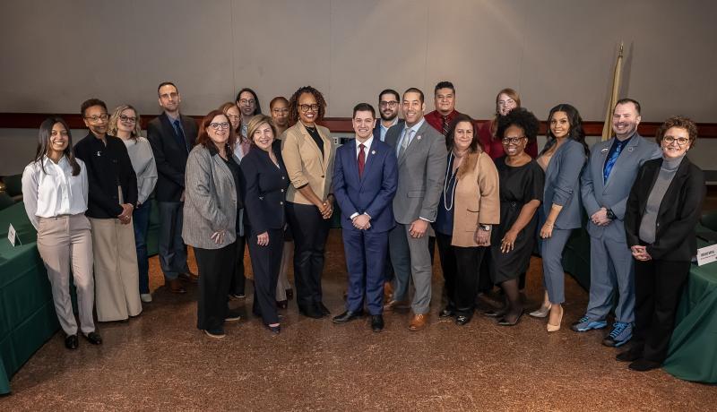 The event was led by NJEA President Sean Spiller and NJCU Interim President Andrés Acebo, and included New Jersey State Senator Angela V. McKnight (District 31), Jersey City Public Schools Superintendent Norma Fernandez, and Union City Superintendent Silvia Abbato. The roundtable consisted of current NJCU teacher candidates studying in the College of Education, NJCU alumni who are currently educators in various partnering school districts, Interim Provost and Executive Vice President of Academic Affairs Dr. Donna Breault, College of Education Dean Lourdes M. Sutton, Ed.D., and members of NJCU’s faculty in the College of Education.