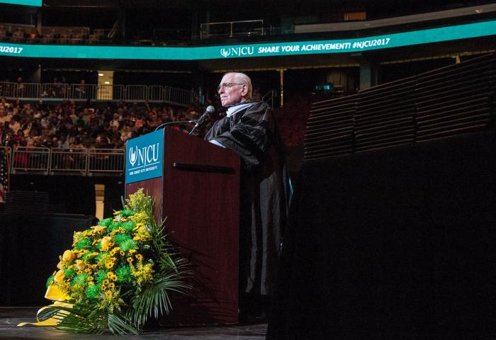 Josh S. Weston, the honorary chairman of Automatic Data Processing, Inc. (ADP), was presented with an honorary Doctorate of Humane Letters at NJCU’s Commencement Ceremony on May 24.