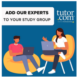 Tutor.com offers free, 24/7 access to expert tutors, providing academic support whenever it’s needed. Students can connect with tutors at any time, day, or night, for help across a wide range of subjects. Simply find the Tutor.com link inside your course on Blackboard to get started.