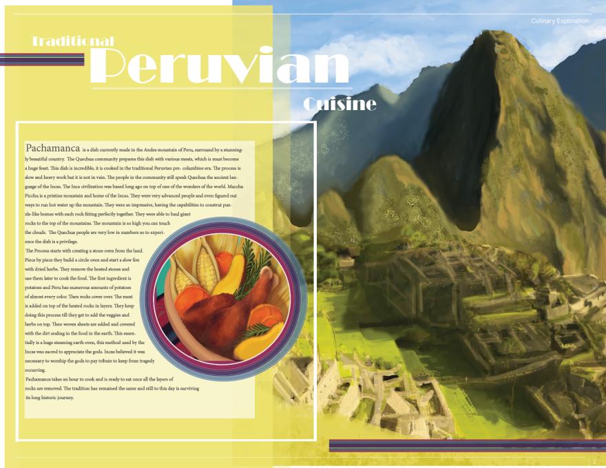 Through time, people do not question where these culinary combinations originated from, instead but looked at the great chefs who prepared the dishes. These illustrations’ focus is to continue asking the same questions: where, when, who and why? The reason why we need to continue asking these questions is to rediscover these gastronomical fares as each dish has a story that needs to be told. While illustrating the French piece it tells a story, which is connected to the Austrian war, the very French croissant we eat for breakfast. The Peruvian Pachamanca a well-known Peruvian dish tells the story of the most notorious Incan empire to have lived in the Americas dating back to 1400 CE. As mentioned, each dish has a story, and behind the one-story is one long culinary expedition that deserves to be explored.