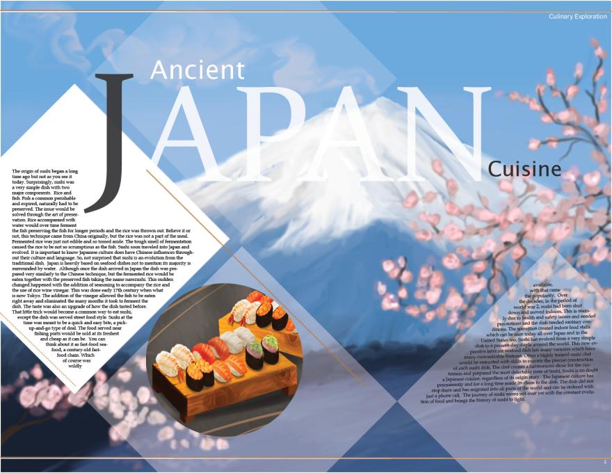 In this series, the illustrations are tailored and set to convey the undeniable differences that define people through food. Furthermore, the purpose is to spread awareness of the historically abundant aspects of culture through traditional and well-known cuisines. As a society we taste, eat, smell, and delight in partaking in the consummation of these outstanding traditional or homemade meals. These illustrations shed some light on the importance of food and its long journey to this modern era.