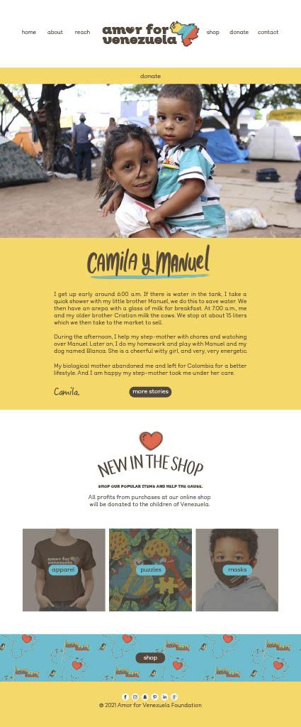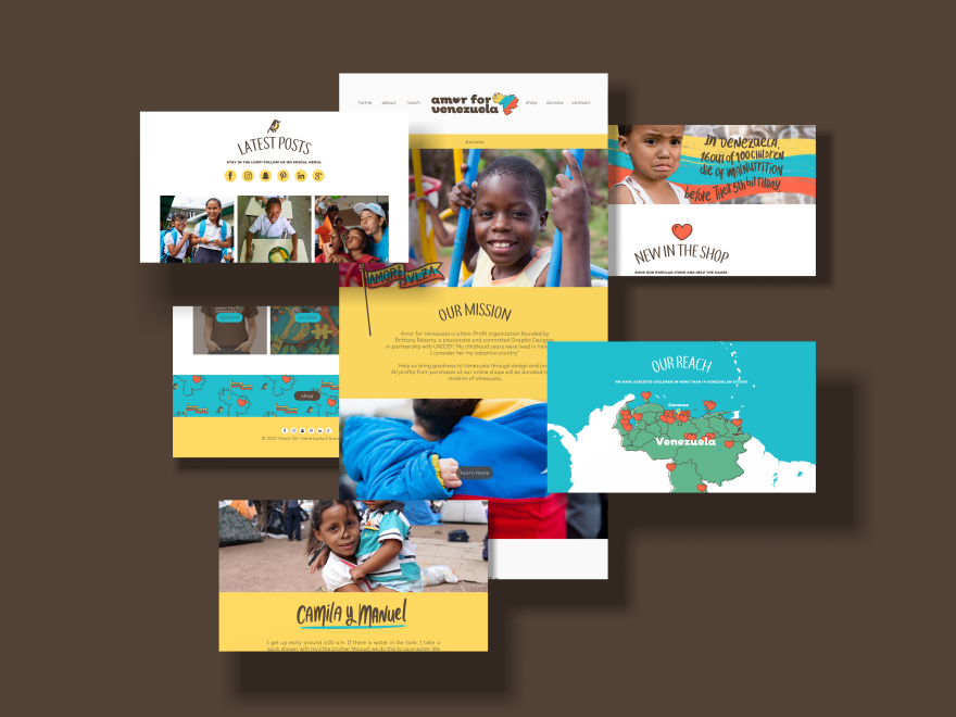 Amor for Venezuela is a (so far fictitious) Non-Profit organization founded by Brittany Roberts, a passionate and committed Graphic Designer in partnership with UNICEF. “My childhood years were lived in Venezuela; I consider her my adoptive country.” The social crisis in Venezuela inspires our organization to provide a better quality of life to those in need. The organization is also concerned with the voice of the people, so we created a platform to help shed light on the lives of children in Venezuela with unique stories of their everyday lives. Amor for Venezuela invited you to check out our online shop for an array of products including apparel, face masks, posters, puzzles, and more. All profits from purchases at our online shops will be donated to the children of Venezuela. Help us bring goodness to Venezuela through