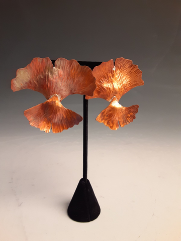 Gingko Earrings, Medium: Copper, Dimensions: 3inx1in, 2021