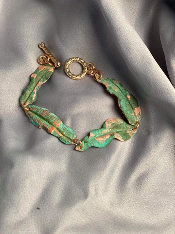 Weeping Willow Bracelet, Medium: Copper, Jump Rings, Green Patina, Dimensions: 2inx5.5in, 2021