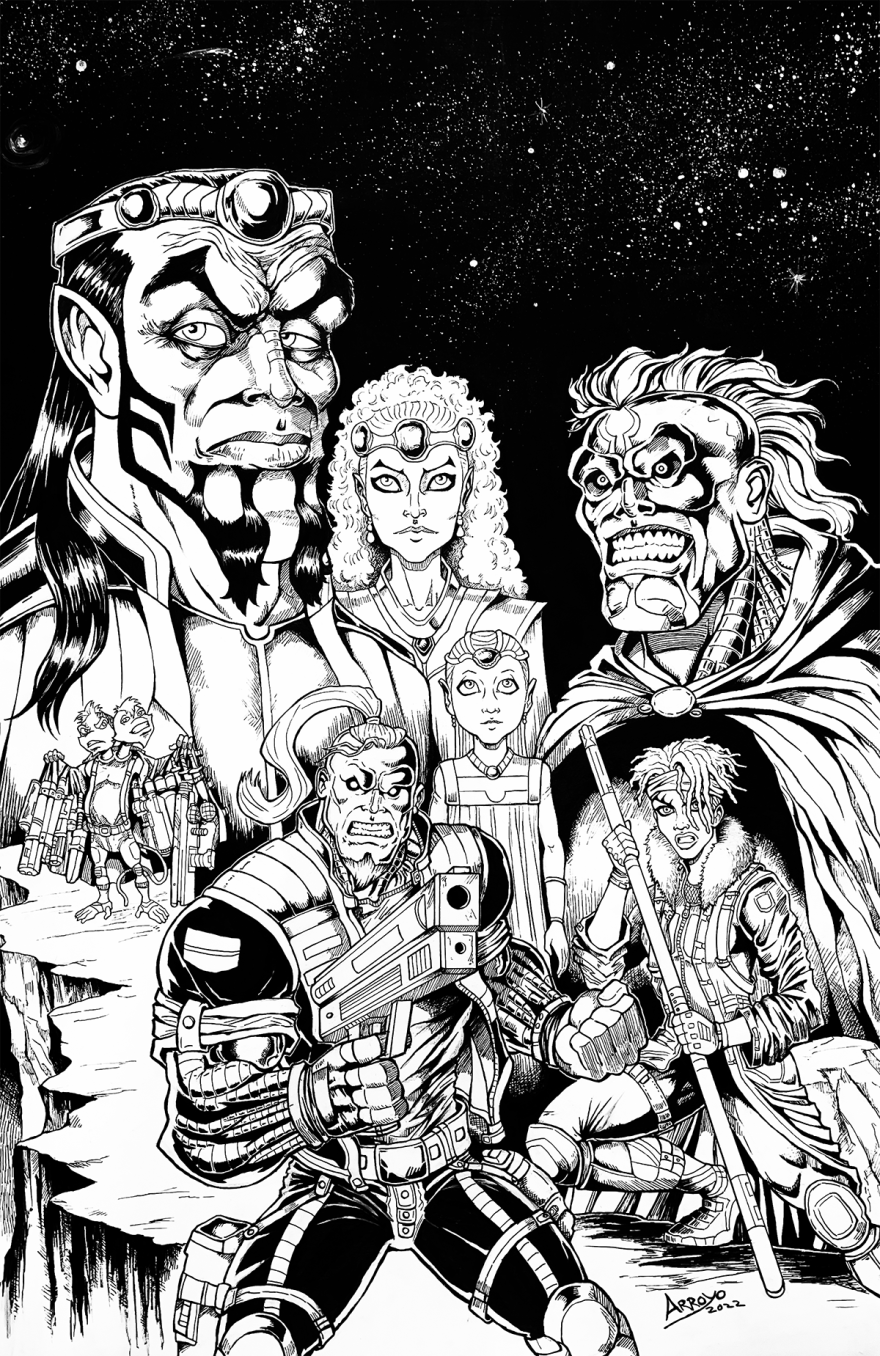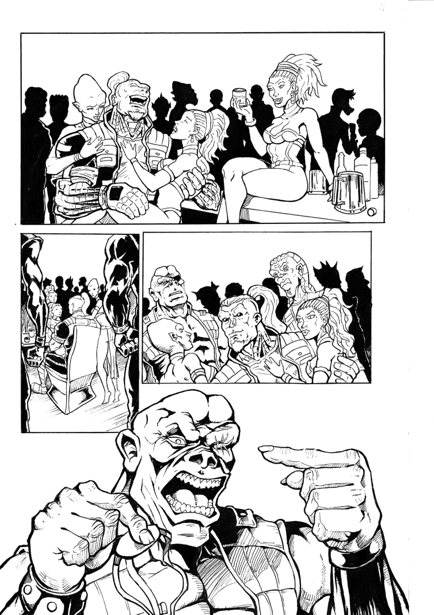 I have assembled some the pages I’m currently working on for my creator owned graphic novel. The art is created using the traditional tools of the comic book trade. The materials include 2H and F lead pencils, black ink applied with brush ,crow quill and tech pens. The story is a love letter to all the classic adventure movies and series I grew up watching.