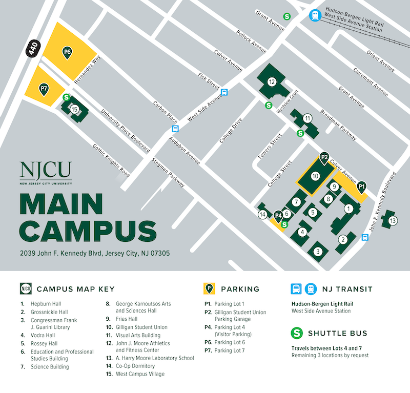 Visitors may access one of the following NJCU paid lots. There is also is limited, metered, on-street parking near campus.