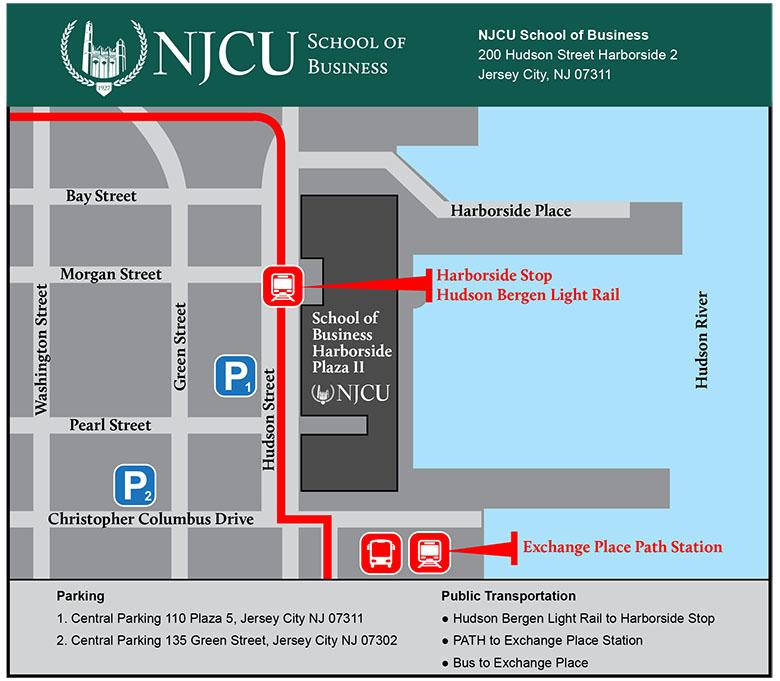 - NJCU School of Business is located in Harborside which is on the waterfront in the financial district of Jersey City, about 10 minutes from main campus.