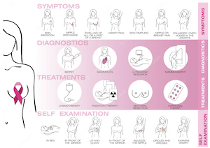 There are different symptoms of breast cancer, and some people have no symptoms at all. Symptoms can include: